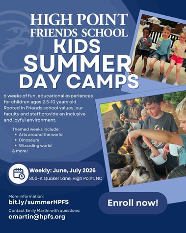 Please contact Emily (emartin@hpfs.org) with any questions regarding the summer camp schedule, sign ups, and/or a half-day option.